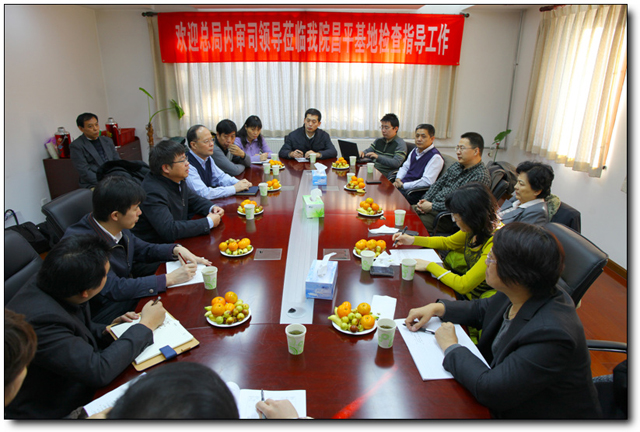 11月28日,总局内审司郑和平副司长一行来访我院昌平实验基地,赵楠副院长、邱月明副院长、王金玉书记、财务部李芸主任、基建办公室邹建华主任、实验室管理部张永祥主任及各个实验室有关代表参加了会议,会议由王金玉书记主持。