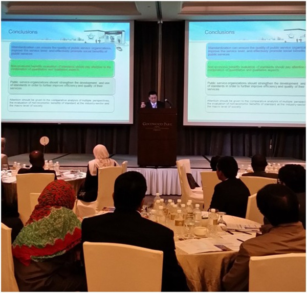 随着标准化研究工作的深入开展,标准在经济、社会及环境方面如何产生效益以及如何定量评估标准的效益引起了各国标准化工作者的浓厚兴趣。为此,国际标准化组织(ISO)于2014年4月3日-4日在新加坡举办了“标准化效益”为主题的国际学术研讨会,来自ISO、中国、美国、俄罗斯、澳大利亚、印度尼西亚、新加坡、南非、马来西亚等组织、国家和地区的70余名代表参加了会议。我院标准化理论与战略研究所付强博士在会议上做了“中国在标准化效益评估领域的研究进展”的报告,将中国在标准化经济效益、社会效益评估领域的研究成果在国际舞台上进行了推广,与各国专家深入探讨了该领域的研究方法。