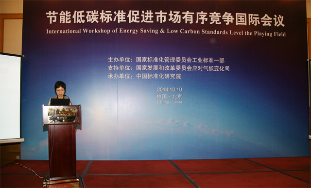 10月10日—11日,作为2014年世界标准日系列纪念活动之一,由国家标准化管理委员会工业标准一部、国家发展和改革委员会资源节约与环境保护司、国家发展和改革委员会应对气候变化司等主办,中国标准化研究院承办的“节能低碳标准促进市场有序竞争国际研讨会”在北京召开。国家标准委总工程师殷明汉,国家标准委纪检组长、党组成员郭辉,国家发展和改革委员会环资司副司长王善成,国家发展和改革委员会气候司副司长孙翠华,国家质检总局计量司副司长张益群,国家认监委认证监管部副主任李春江等主管部门领导到会并致辞,来自中国、美国、英国、法国、加拿大、新加坡、韩国等国相关标准化机构、研究机构、行业组织和企业的代表参加了会议。我院党委书记兼副院长王宗龄到会致辞,副院长兼总工李爱仙主持会议。