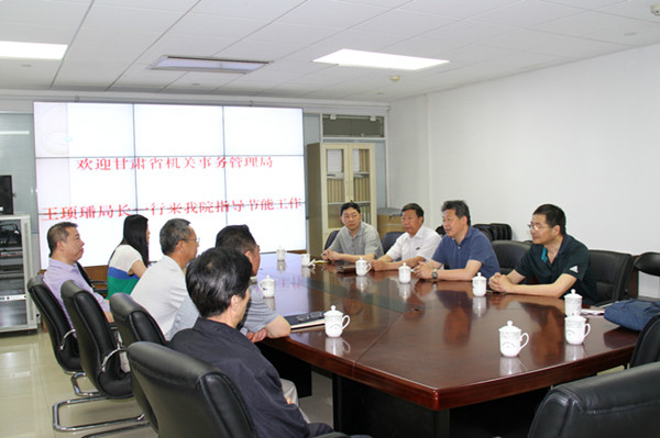 6月15日上午,甘肃省机关事务管理局副局长王顼璠一行五人来我院参观学习节能工作的经验做法。我院副院长汤万金、综合服务中心主任范有利、资环分院陈海红博士等参加了学习交流会。
