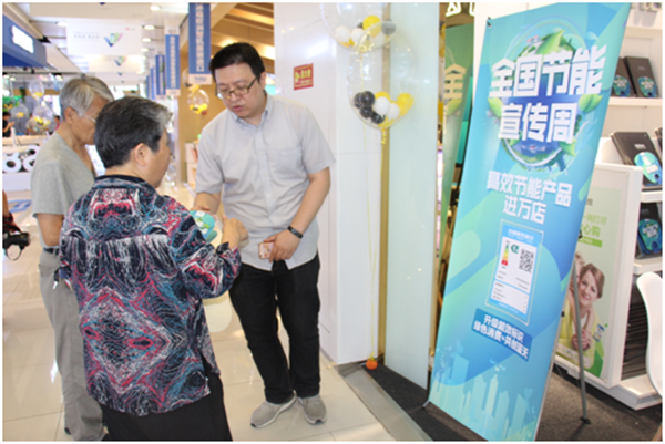 活动现场运用循环播放能效标识的公益宣传片、设置能效标识专区提供专业讲解、开展扫码体验互动活动等多种方式,为消费者讲解能效标识新功能。