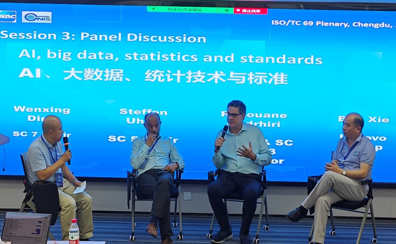 2025年6月27日下午,国际标准化组织统计方法应用技术委员会(ISO/TC 69)在四川成都召开了“数据科学在人工智能、大数据和统计中的应用和趋势”专题讨论会。本次会议是ISO/TC 69全体会议的特别安排,邀请了TC69年会参会代表、我国统计方法应用专家以及企业人士共同探讨AI、大数据等新兴技术对统计方法应用标准化工作的影响,并展望未来的标准化趋势。中国标准化研究院(以下简称标准院)副院长戴新华、四川省产品质量监督检验检测院总工程师李铭出席本次会议并致辞。