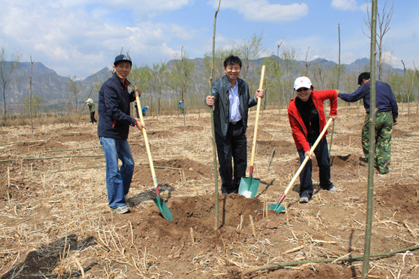 4月22日,我院第十一党支部(食品所支部)在延庆县植树基地举行了第一届“植树绿化”活动,邱月明副院长、院党办宋寅平主任、食品所全体党员干部和职工参加了本次活动。 本次活动的理念是“绿色家园,从我做起”,做到人人营造绿色,人人宣传绿色,人人保护绿色。在蓝天白云下,大家干劲十足,发扬了团结协作的精神,亲手为营造绿色首都种下了一颗颗树苗,留下了一份份希望,同时也丰富了支部生活,和谐了干群关系,提高了党支部的凝聚力。