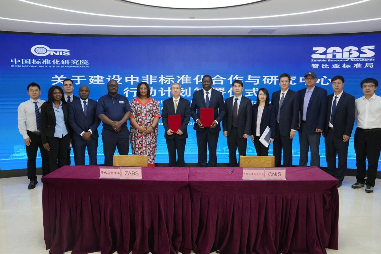 双方围绕中非标准化合作与研究中心(以下简称中非中心)、中非标准信息平台、中赞农业标准化示范区建设及标准订阅服务等议题进行深入交流。会后,双方共同签署关于共建中非中心行动计划,明确了未来合作重点方向和实施路径,为进一步深化中赞标准化合作奠定坚实基础。