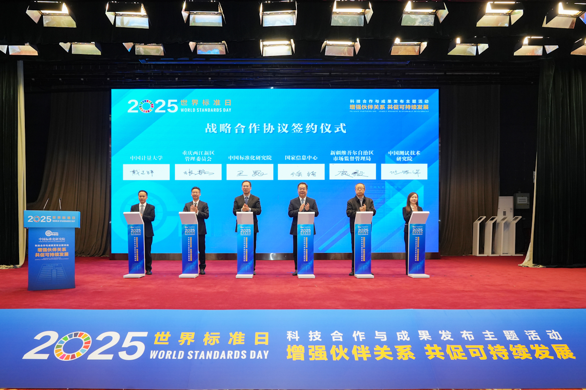 为贯彻落实《国家标准化发展纲要》,进一步推广标准化理念,加强标准化宣传和普及,10月13日上午,作为市场监管总局第56个“世界标准日”系列活动预热环节,中国标准化研究院(以下简称标准院)举办科技合作与成果发布主题活动,围绕“美好世界的共同愿景:增强伙伴关系,共促可持续发展”主题,与有关单位共同签署战略合作协议,集中发布展示2025年重要研究成果。标准院党委书记、院长王昆出席活动并致辞,活动由标准院副院长戴新华主持。市场监管总局相关司局领导、标准院领导班子成员,各有关单位、企业领导及专业代表出席活动。