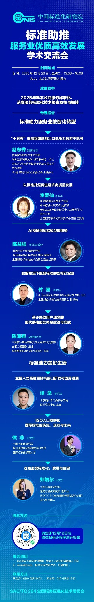 会议预告 | 2025.12.23 “标准助推服务业优质