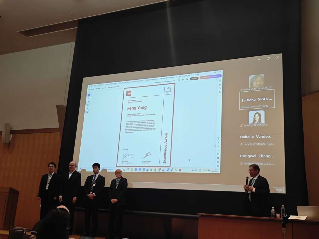 本次会议上,共有7位专家荣获ISO卓越贡献奖,包括SC1前任主席Yoshiaki Ichikawa、SC1现任主席Takahiro Kihara,SC2前主席Masanori Misumi,TG2召集人杨锋,TG3召集人Jose Augusto Pinto de Abreu,WG2召集人Patricia McCarney,WG3召集人董山峰。该奖项旨在表彰他们在推动城市可持续发展国际标准化工作中的持续努力与突出贡献,也彰显出中国在国际标准化领域中日益增强的影响力。