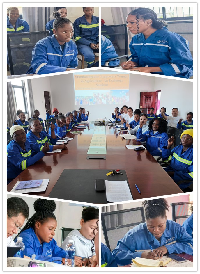 交流研讨展示女性价值,探索标准化赋能农场女性角色重塑。项目特别关注农场女性在标准化实践中的关键作用,组织奇邦博农场的20余名赞籍女员工,围绕标准化技能提升、标准化实践方式方法、标准化知识代际传播、标准化促进自我认同与价值重塑等议题开展了专题交流。参与讨论的赞籍女性甚至提前做了笔记,与专家们分享了自己对标准化的认识以及如何更好地发挥女性在标准化示范推广中的不可替代作用。通过这场知识的碰撞,专家们深刻认识到了赞籍员工对农场标准化建设的重要意义,赞籍女性更是对自身的价值尤其是在传播农业标准化知识等方面有了新的认识。参与交流的种植部组长Malikiso女士在交流中表示:“要想改善我们当地的农业生产方式,女性是非常重要的力量,我身边的女性有将近70%都参与到了农场的劳作中,持续的标准化培训对我们来说非常有意义,因为我们不仅是标准化的学习者,还可以作为标准化的传播者。我们有信心学会这套标准化的技术方法,来更好地管理我们的土地,将这些新知识、新技术传播给我们周围的更多女性朋友,让标准化知识争取惠及到身边每一个人。”