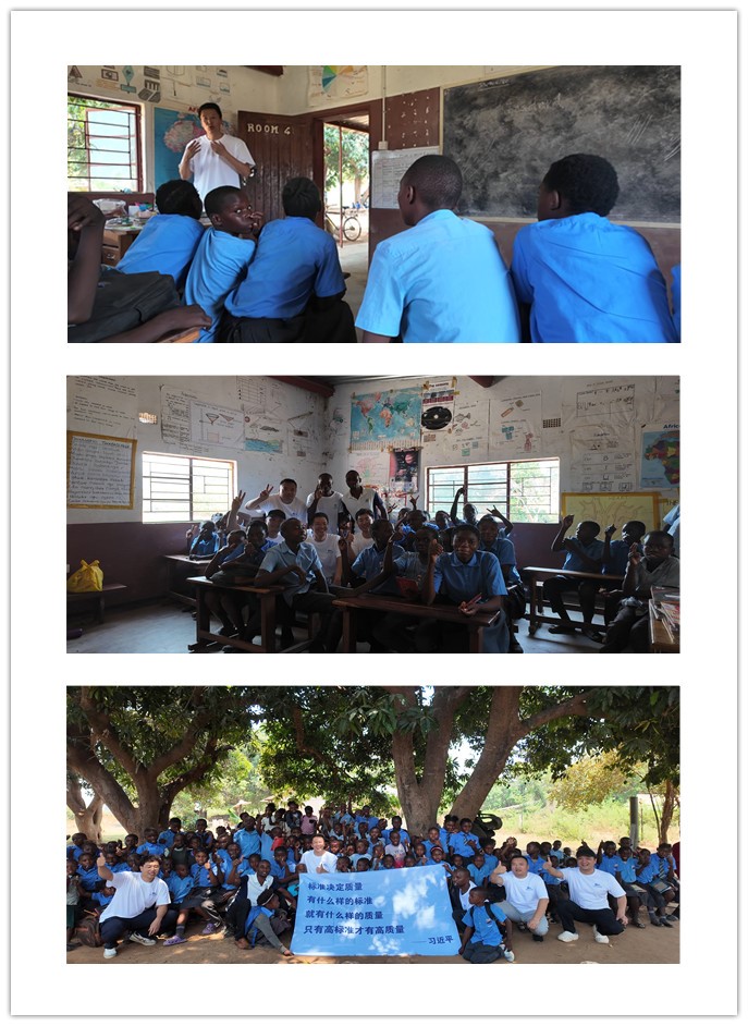 “科普+互动游戏”播撒希望种子,启迪农场少年埋下标准火种。在锡纳宗圭农场自建的小学校里,标准院项目组,农食所所长云振宇研究员与项目组员燕艳华副研究员一同为80余名师生举办了一场别开生面的标准化知识科普讲座。专家们通过实物展示、板书讲授、知识问答等方式,让孩子们在矿泉水包装上找到了赞比亚国家标准代号,了解了教室中用到的电灯、课桌、粉笔等物品都要符合相应的质量标准。同时,专家们开展了辣椒感官质量分级互动小游戏,为孩子讲解了为什么同一块田地里会出现不同颜色、不同规格、不同质量的辣椒,教授孩子们通过“一看、二闻、三查”的方式从混有不同等级的辣椒中筛选出了符合标准要求的辣椒,亲身领会了“标准决定质量”的重要内涵。一位学校老师Nyimba在参加完科普讲座后说道,“专家们讲授的标准化知识很有趣,我也是第一次通过这种方式重新认识标准,今天的讲座对于孩子们来说一定会终生难忘,他们第一次认识了赞比亚自己的国家标准,从孩子们脸上洋溢的笑容可以看出,孩子们很乐于参与这样的活动,也对这些知识很向往,希望今天的授课在孩子们心中会留下标准化的启蒙。”